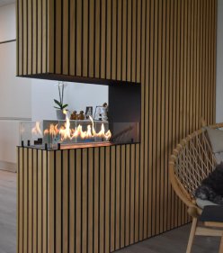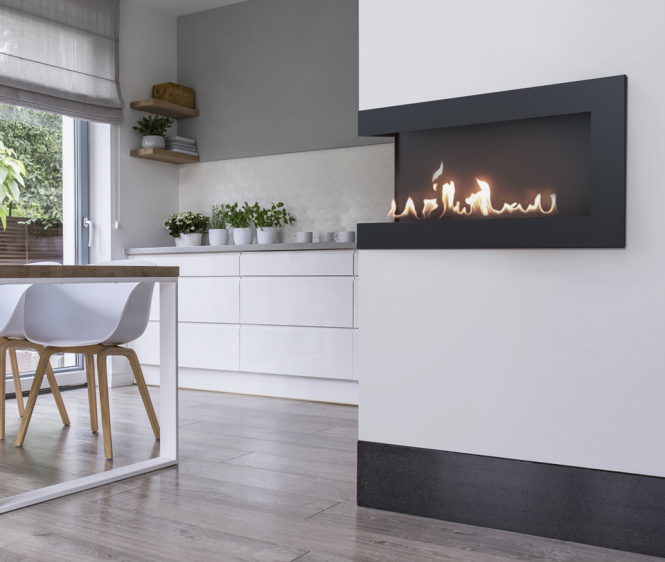 Poziomy biokominek z otwarciem na lewą stronę, ze względu na narożny kształt, jest doskonałym rozwiązaniem na zabudowę różnego rodzaju wnęk w mieszkaniach i domach...